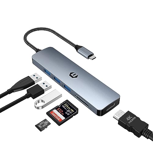 Tymyp 6-i-1 USB-C-hub, dubbel skärm, USB C-adapter med (4K HDMI, USB A 3.0, SD/TF-kortläsare), Chromebook Pro/Air Multiport Dock för Surface, XPS och fler typ C-enheter