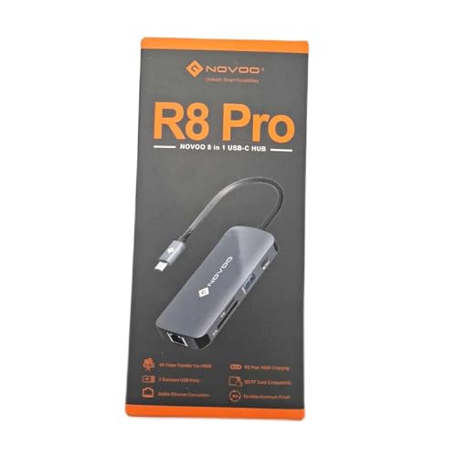 NOVOO USB C Ethernet-Hubb, 8-i-1 HDMI 4K Adapter Med 100W PD, USB 3.0, SD/TF Multiport Dock För MacBook Pro Air M2 M1, Surface iPad Galaxy HP