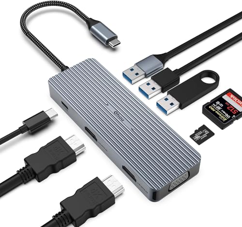 9-i-1 USB C-hub, trippelskärm, 2 x HDMI/VGA, Mac Pro/Air Docking Station för Dell, Surface, HP, Lenovo, typ C-enheter (SD/TF+USB A 3.0/2.0 + PD-laddning)