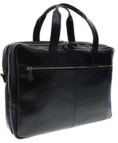 Exacompta - Ref 17537E - Exactive - Laptopväska i läder med dubbla fack - 410 x 300 x 195 mm i storlek, 2 vadderade fack för en 15,6-tums laptop och surfplatta - svart och orange