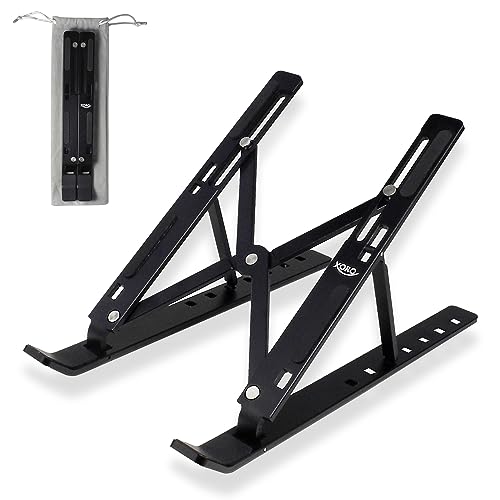 Funktionellt laptopstativ för MacBook Pro/Air, HP, Sony, Dell och alla 10 tum – 15,6 tum bärbar dator och surfplatta i flera nivåer, höjdjusterbar, ventilerat öppet aluminiumram, vikbart, skyddsfodral