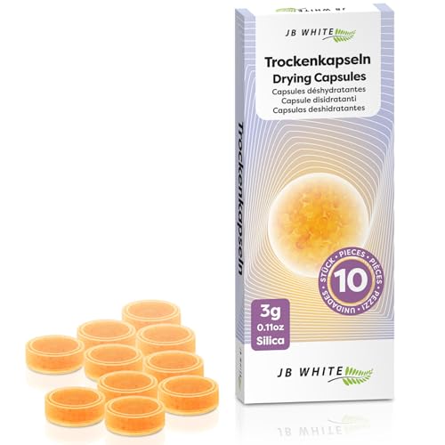 JB White 10 torkkapslar för hörapparater | Kompatibel med Phonak laddningsfack | Universal färgindikator för torkkoppar | Tillbehör för torkning av surfplattor (3 g, individuellt förseglade)