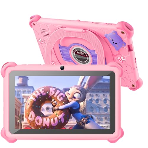 zcobro, surfplatta för barn med fodral, android barnsurfplatta 2 GB RAM 32 GB ROM 256 GB utbyggbar, Wi-Fi, Bluetooth, Type-C, barnsäkring, barnsurfplatta med Quad Core, rosa