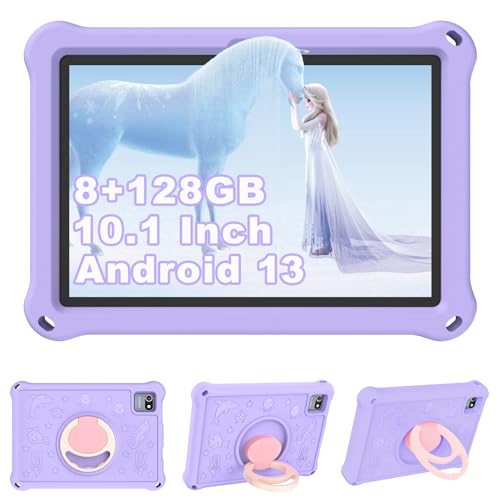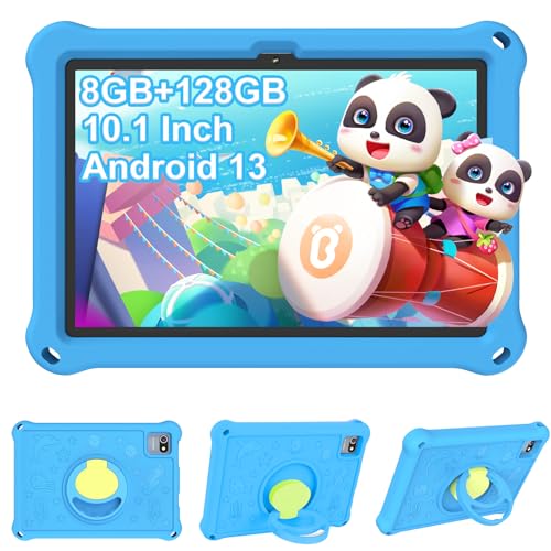 YUMBOT Barnsurfplatta, 10" barnsurfplatta med wifi Android 13,8 GB RAM, 128 GB, ROM, surfplatta för barn 3, 6, 8 år, föräldrakontroll 6 000 mAh, 1280 x 800 Netflix pekplattor, EVA-fodral, blå