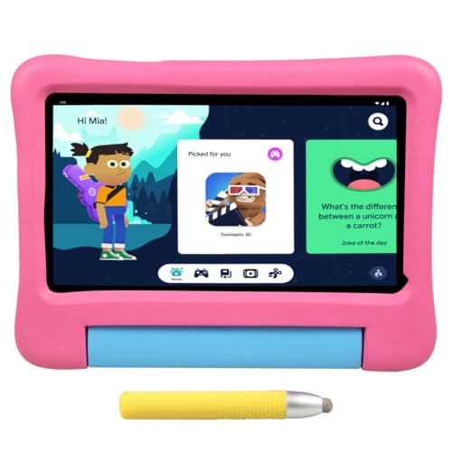 KYASTER Surfplatta för barn, 7 tums HD IPS-skärm, Android 12, Quad Core 2.0 Ghz, 6 GB+64 GB, 5G WiFi, 3500 Mah batteri, föräldrakontroll, EVA barnsäkert fodral med penna (Rosa)