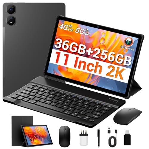 MAXLEGEN Touch-surfplatta, 11" 2K FHD-skärm, 4G LTE+5G wifi, 36GB RAM+256GB/1TB expanderbar, åtta-kärna, Android 14 surfplatta, 9580mAh, 13MP kamera, GPS, tangentbord/mus/penna/hörlurar/fodral ingår