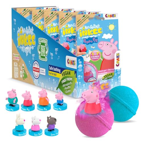 Craze INKEE Surprise | uppsättning med 8 Peppa Gris badbollar för barn med överraskning, Peppa Pig leksak för badkaret, med jordgubbsdoft och skumeffekt