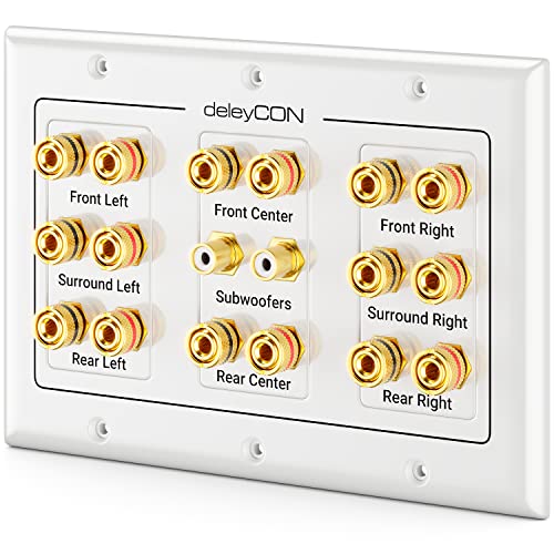 deleyCON Multimedia Högtalare Boxar Vägguttag Anslutningsuttag Väggplatta med Banankontaktuttag för 7.1 Surround Sound System och Subwoofer Hemmabio