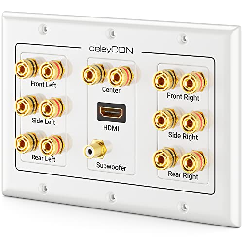 deleyCON Multimedia Högtalare Boxar Vägguttag Anslutningsuttag Väggplatta med Banankontaktuttag & 1x HDMI-uttag för 7.1 Surround Sound System och Subwoofer Hemmabio