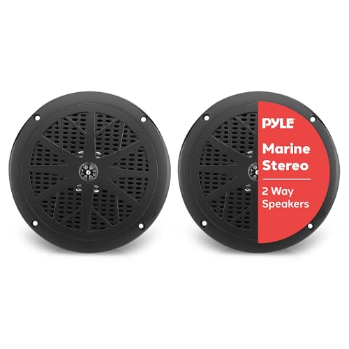 Pyle 4 Inch Dual Marine Speakers - Waterproof and Weather Resistant Outdoor Audio Stereo Sound System with Polypropylene Cone, Cloth Surround and Low Profile Design - 1 Pair (Black)