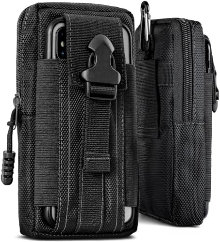 ONEFLOW Survival Case kompatibelt med Volla Phone X – Mobiltelefonbältesväska av nylon med karbinhake, taktisk EDC-väska med bälteshållare, utomhus mobiltelefonfodral – svart