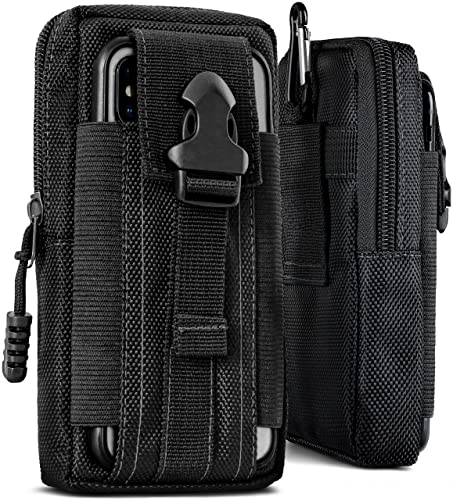ONEFLOW Survival Case kompatibelt med TP-Link Neffos C5 Max – Mobiltelefon-bältesväska av nylon med karbinhake, taktisk EDC-väska med bälteshållare, utomhus mobiltelefonfodral – svart