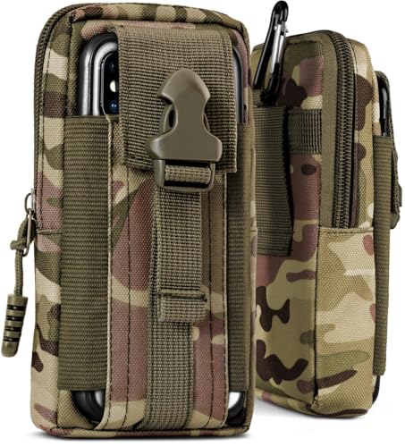 ONEFLOW Survival Case kompatibelt med Doro 7010 – Mobiltelefonbältesväska av nylon med karbinhake, taktisk EDC-väska med bälteshållare, utomhus mobiltelefonfodral – camo grön