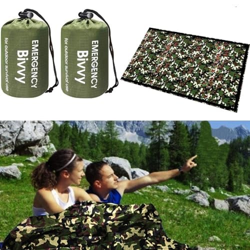 HONYAO Survival Sleeping Bag for 2 Person Emergency Bivvy Bag Extra Large Emergency Blanket Reusable for Outdoor Camping Hiking - 2 Pack Camouflage