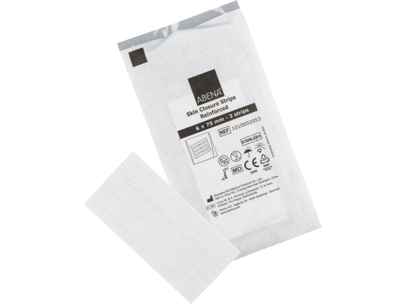 Suturtejp, Abena, 75X6mm, Vit, Förstärkt, Ark Med 3 Remsor, Latexfri, Steril