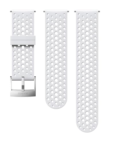 Suunto SS050224000 original klockarmband för alla Suunto Spartan Sport WRH och Suunto 9 klockor, silikon, längd: 22,8 cm, bredd: 24 mm, inkluderar nålar för att fästa remmen, vit/silver