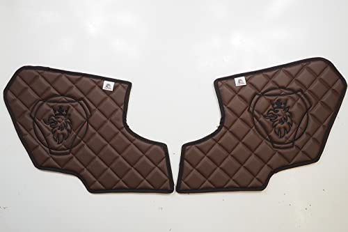 KRAM-TRUCK sidodelar quiltade broderade för dörrar 2 delar, kompatibla med SCANIA R, P, G från 2017, mörkbrun, kardborrfäste, svamp syntetiskt läder 1 cm, hygiencertifikat