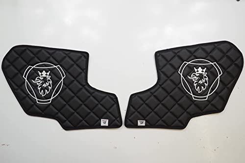 KRAM-TRUCK sidodelar quiltade broderade för dörrar 2 delar, kompatibla med SCANIA R, P, G från 2017, svart, kardborrfäste, svamp syntetiskt läder 1 cm, hygiencertifikat