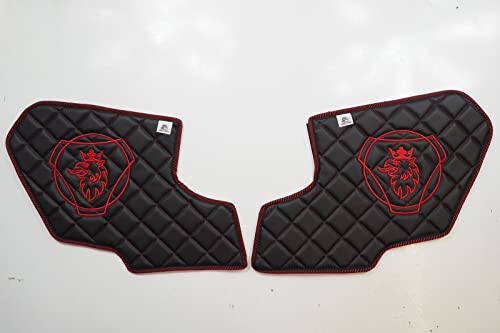 KRAM-TRUCK sidodelar quiltade broderade för dörrar 2 delar, Kompatibel med SCANIA R, P, G från 2017, svart med röd tråd, kardborreband, svamp syntetiskt läder 1 cm, hygiencertifikat