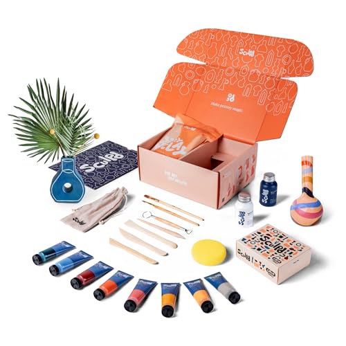 Sculpd keramikkit, lufttorr lera startsats för nybörjare med akrylfärgpennsset, keramikverktygsset, akrylfärg, vattentät lack, penslar, svamp och 20 delar steg-för-steg-guide