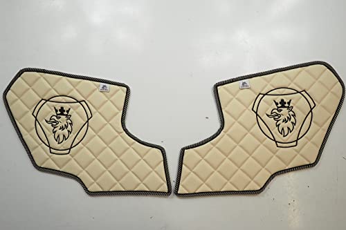 KRAM-TRUCK sidodelar quiltade broderade för dörrar 2 delar, kompatibla med SCANIA R, P, G från 2017, ljusbeige, konstläder på svamp 1 cm, hygiencertifikat, kardborrfäste