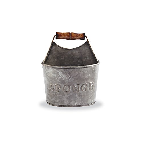 YAMAZAKI Hemkran hängande köksorganisatör diskho hylla korg | stål | svamphållare, kol, vit, en storlek
