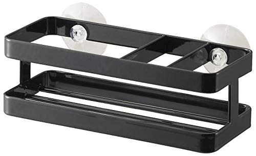 Yamazaki 2265 Tower dubbel svamphållare med sugkopp, svart, stål, minimalistisk design, 7,5 x 6,3 x 12,7 cm (L x B x H)