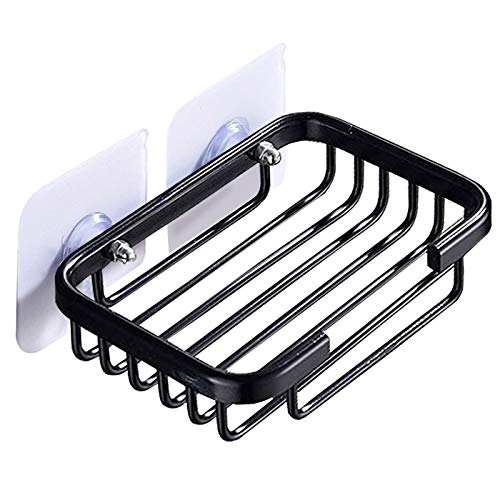 Tvålhållare för badrum, aluminium självhäftande duschtvål skål svamphållare för badrum tvättställ och toalett, tvålhållare för duschvägg ingen borrning (svart)