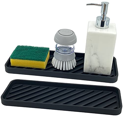 Leadfun Diskbänksorganisatör silikon svamphållare 30 cm x 11 cm, kök badrum arrangör för svampar, borstar, tvål, droppmatta silikon, diskmaskinssäker (svart, 2 stycken)