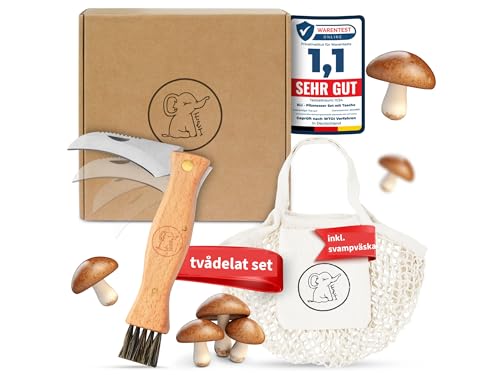 Eli® Svampkniv med borste och bomullsväska – högkvalitativ svampkniv med pensel – fällkniv – trädgårdskniv – trädgårdshippe – svampborste – väska – snidkniv