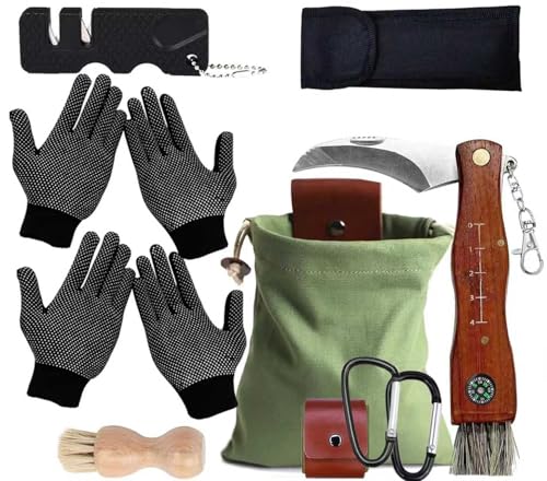 Nizirioo Svampkniv med borste och svampuppsamlingsväska 3-set, svampkniv med borste och linjal inklusive väska, mushroom foraging midjeväska, fällkniv för svampsamling, utomhus och camping