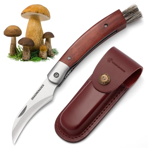 DRACHENADER svampkniv N-1, vikbar fickkniv med borste och tvåhandskniv 42a kompatibel fällkniv (Liner Lock), trähandtag