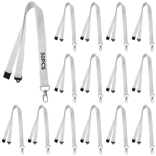 Chewtoyo 30-pack polyester sublimering nyckelband med säkerhetsklämma och svängbar krok, vita nackremmar för anställdas ID-märken, vita, Vitt