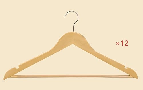 SONGMICS Trähängare, set med 12, med halkfria skåror, halkfri byxstång, 360° svängbar krok, för kostymer, skjortor, rockar, naturbeige CRW010N12