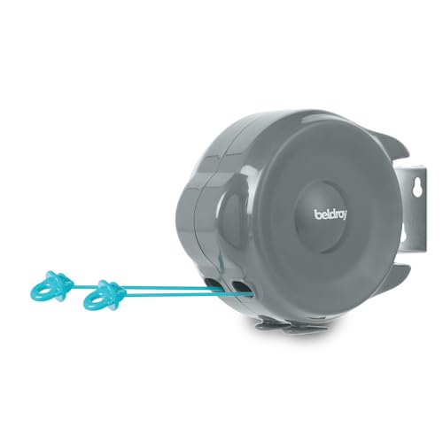 Beldray infällbar klädstreck – 30 meter torkning, anti-slack krok, svängbar väggfäste, flerriktad tvättlinje, platsbesparande, spänd och säker, LA035822FEU7, kolstål, grå, en storlek