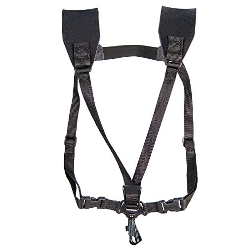 Neotech Saxofonsele, mjuk, vadderad axelsele med justerbar remkrok, svängbar krok för saxofonrem, barytonsaxofonsele, klarinettnackrem, storlek XL, svart