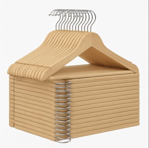 MSV - Set med 36 massiva trähängare - hög hållfasthet och lastkapacitet, böjda sidor, deformeras inte - 360° svängbar krok - 44 cm - beige