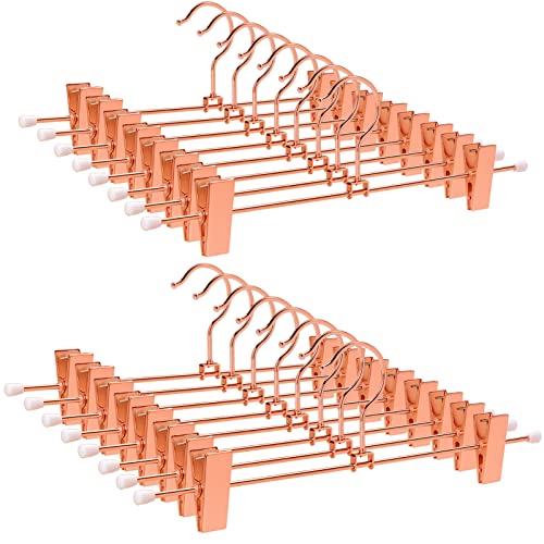 Amber Home 24-pack rosa koppar guld metallbyxor kjolhängare 30 cm, robusta för byxor med 2 justerbara halkfria klämmor och svängbar krok (24-pack)