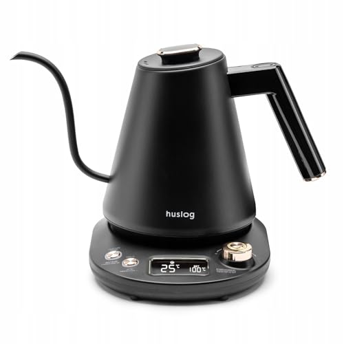 Huslog 1 l vattenkokare med svanhals, temperaturkontroll (40 °C), håller sig varm, LCD-skärm, rostfritt stål, 1 100 W - perfekt för kaffe och te