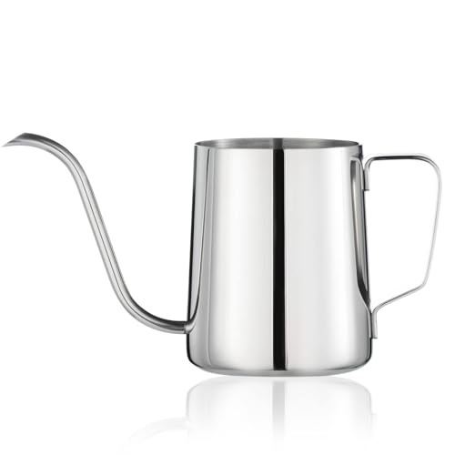 MERMOO YILAN svanhals vattenkokare 350 ml kaffekanna, liten rostfritt stål, svanhals, kaffebryggare, pour over kettle, kaffekruka (silver)