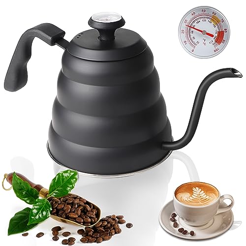 Häll över kaffekanna med termometer för exakt temperatur 1 20 ml – premium rostfritt stål svanhals vattenkokare för droppkaffe, fransk press och te – fungerar på spis och alla värmekällor