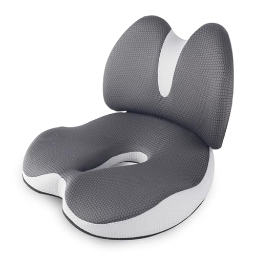 MWSHIYUQING Kudde för ländrygg, (sittkudde + stolkudde) höft- och midjeskydd, avtagbar dragkedja, andningsbart minnesskum, anti-stress, kudde för smärta i svanskota, ischias, grå