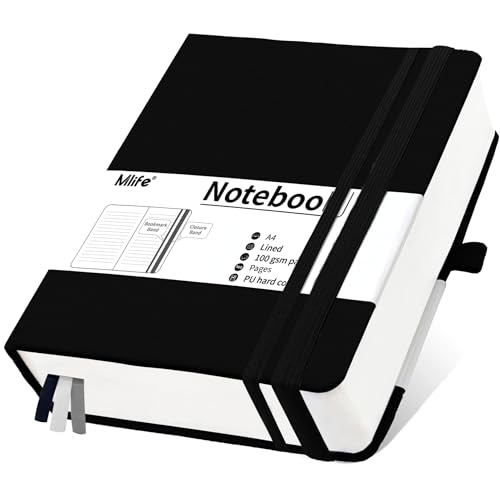 Mlife A4 linjerad anteckningsbok,-360 sidor tjock college linjerad anteckningsbok,100Gsm premium tjock papper,innerficka,PU hård pärm, dagliga anteckningar för män kvinnor skola(Svart)