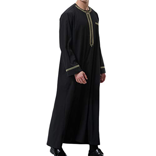 KRUIHAN Män Kaftan Långärmad Thobe för Män Svart Jalabiya Jubba Abaya Herrkläder Muslimsk Bön Clothe islamiska gåvor, Svart, XXL