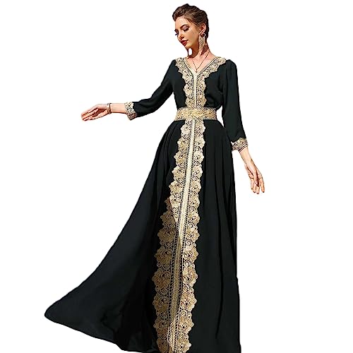 PolyJolly Gold Applique Abaya klänning för kvinnor Dubai Sadui fin marockansk arabisk Jalabiya Eid-kollektion, black07, M