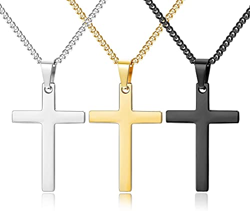 YADOCA 3 stycken korshänge i rostfritt stål med 50 cm halsband för män kvinnor silver guld svart, Rostfritt stål, Ingen ädelsten