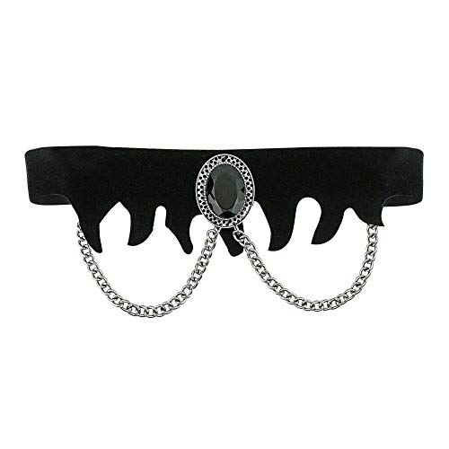 Widmann 7134V – gotiskt sammetsband, med svart ädelsten och kedjor, smycke, kostymaccessoar, gotik, temafester, karneval, halloween