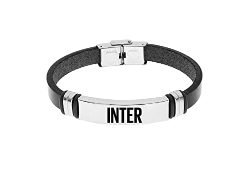F.C. Internazionale Läderstålarmband, man, svart stål, Taglia Unica, rostfritt stål, ingen ädelsten, Taglia Unica, Rostfritt stål, Ingen ädelsten