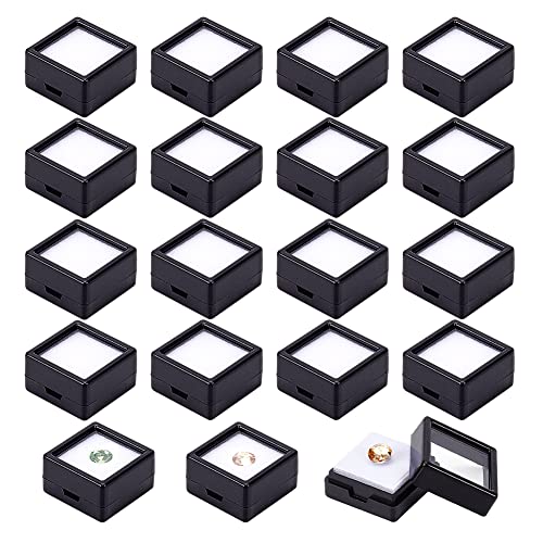 BENECREAT 36 st svart ädelsten displaybox plast transparent bar sten låda, svart fyrkantig smyckeskrin, 2,95 x 2,95 x 1,65 cm, lämplig för ädelsten, smycken, kristalldiamant tillbehörsdisplay