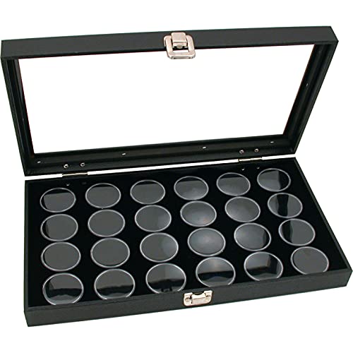 Findingking glas topp smycken displayfodral låda svart 24 ädelsten burkar